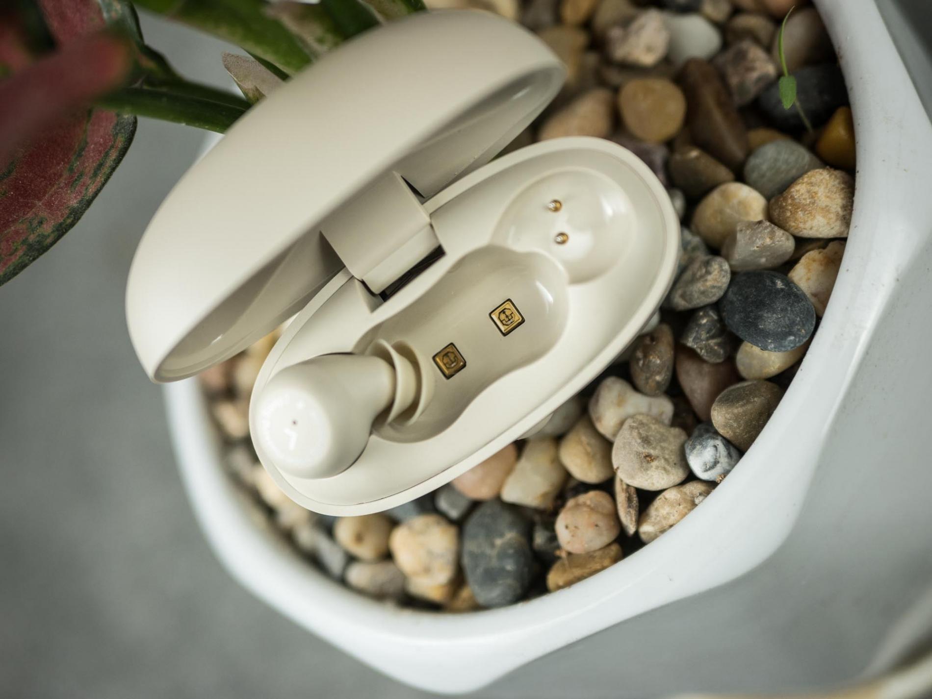 揭開充電倉,耳機分左右放置,隨機安裝的是S號雙層硅膠耳帽。