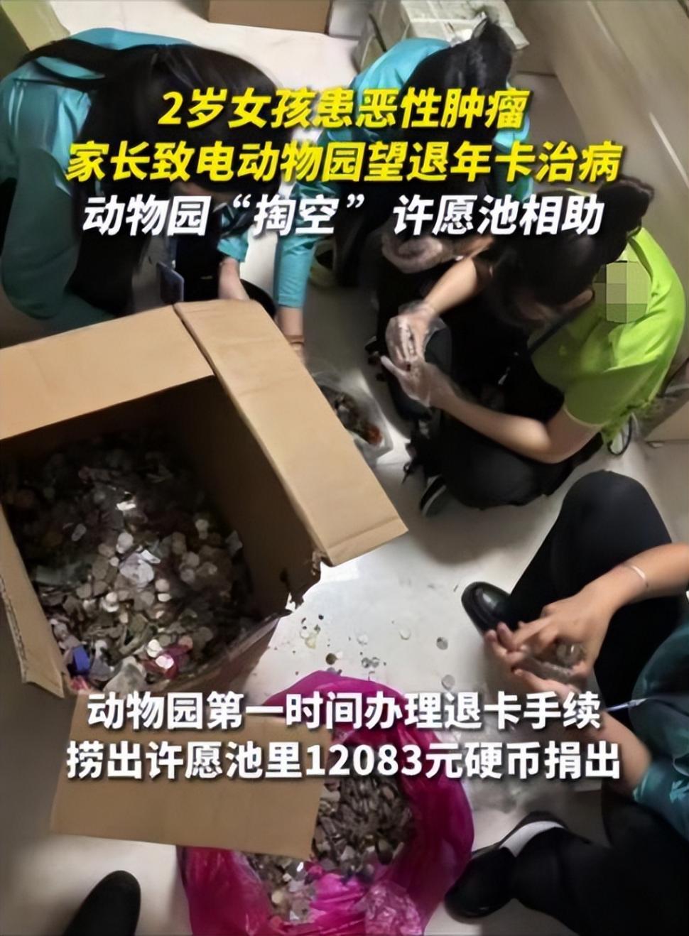更讓這個家庭感受到來自社會各界溫暖的是,動物園決定把許愿池里的硬幣拿出來,用于捐贈給女童看病,共計12083元,并且投資方還發起了愛心捐贈活動,籌得50000元捐款。