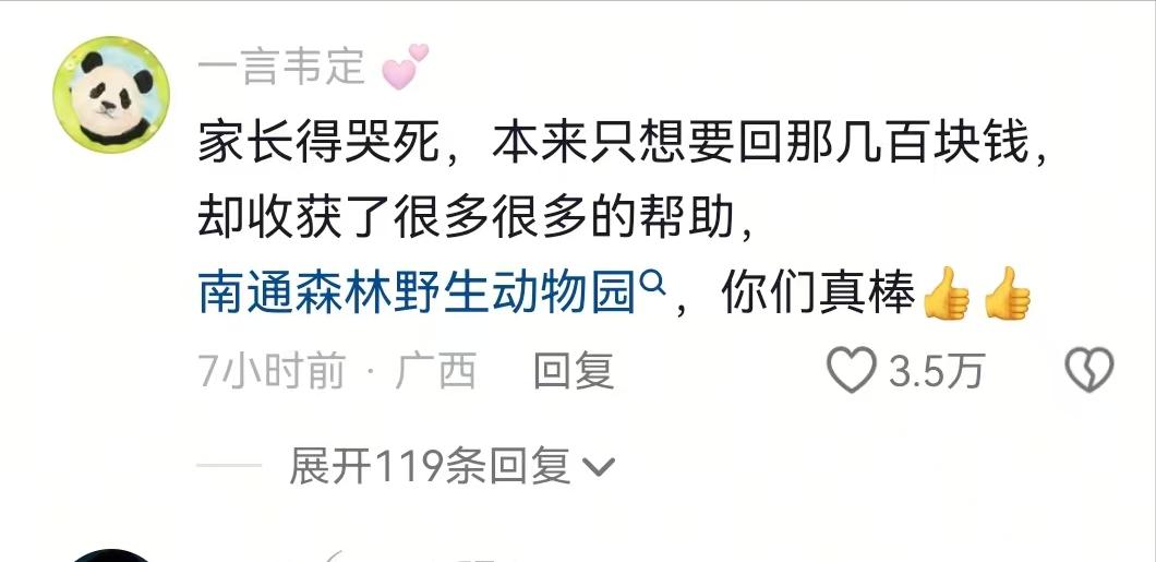 在一番陳述過后,原本不抱希望的母親很快就得到了園長退錢的回復。不光如此,動物園還保留了這位母親的年卡權益,并告知她“孩子康復后歡迎帶著孩子來玩”,我想此刻孩子的母親應該已經是淚流滿面了。