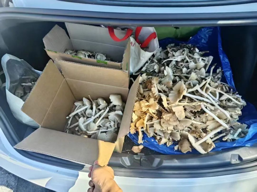 她一個人就挖了整整一后備箱的雞樅菌,