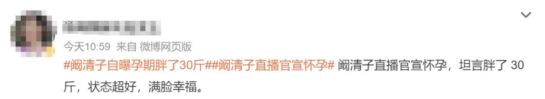 7月23日,闞清子疑似在直播中回應了粉絲關于她傳聞的提問,直播中,粉絲不斷詢問闞清子發胖的原因是不是懷孕了,闞清子回答是的。