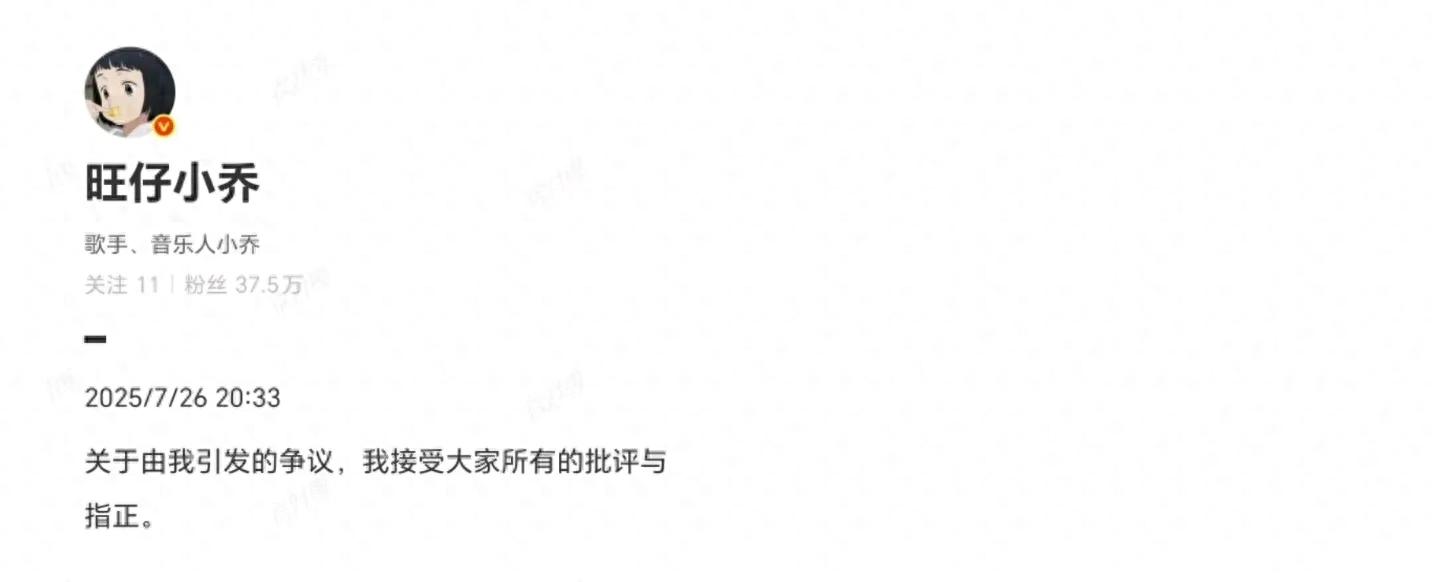 現在隨著汪、張唱權之爭,輿論發酵如此之大,旺仔小喬突然出來道歉,想來應該是受到各方壓力了吧。