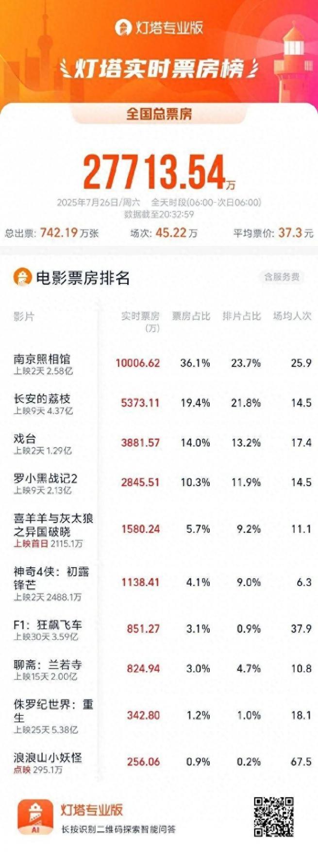 燈塔專業版實時數據,截至7月26日20點35分,電影《南京照相館》單日票房突破1億元。目前,電影票房達2.58億元,超700萬人走進影院觀影。