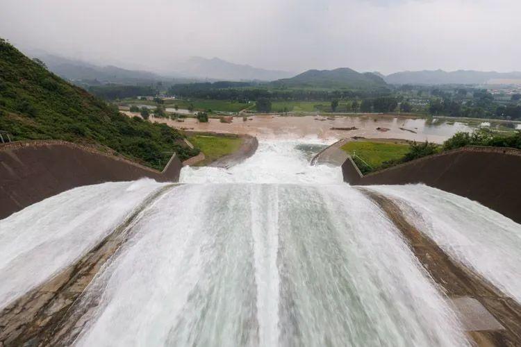 ▲隨著閘口打開(kāi),水流奔涌向前。密云水庫(kù)管理處副主任顧拓介紹,為了應(yīng)對(duì)后續(xù)上游來(lái)水,密云水庫(kù)將陸續(xù)加大下泄流量。