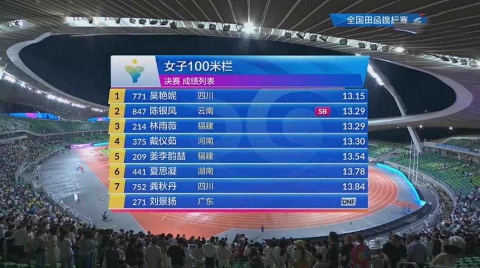 云南的陳銀鳳13秒29排名第2位,林雨薇也是13秒29,但是千分位比較落后,屈居第三。至于美女網紅夏思凝,只跑出13秒78的糟糕成績,排名第6位。她已經成為了別人的背景墻。