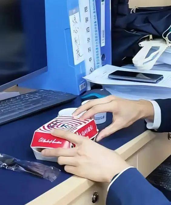午餐時淡定地吃著肯德基的炸雞