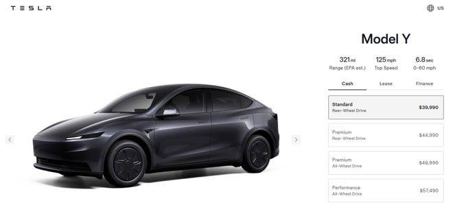 從特斯拉的美國官網(wǎng)上看,丐版毛豆 Y 的定價(jià)是3.996 萬美刀。參考現(xiàn)款 Y 的 4.499 萬美刀,丐版的價(jià)格降幅也就只有可憐的九分之一。
