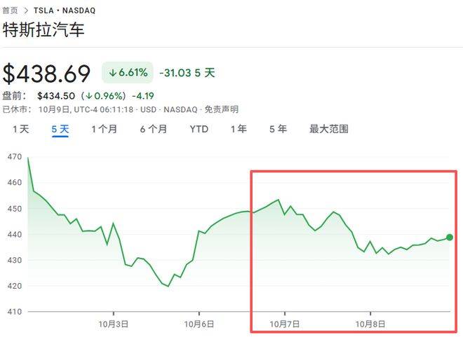 可事實(shí)是,在丐版 3&Y 官宣的 10 月 7 日,特斯拉的股價(jià)直接原地就跌了 4.45% ,蒸發(fā)了超過 4630 億美元的市值。