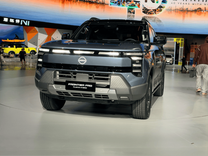 除了轎車領域的創新,日產還在皮卡市場發力。首款在中國設計、研發和生產的全球皮卡車型Frontier Pro同步亮相。新車基于鄭州日產“星核”全球多元越野平臺打造,提供插混版與燃油版雙動力選擇,預計將于2025年四季度全球發售。Frontier Pro的外觀采用“硬核科技美學”理念,硬派風格中融入電氣化細節,如電動伸縮踏板、車頂行李架及可一鍵電動關閉的貨箱尾門。尾門開啟時,左后延伸電動踏板的設計,進一步提升了上下貨箱的便利性。
