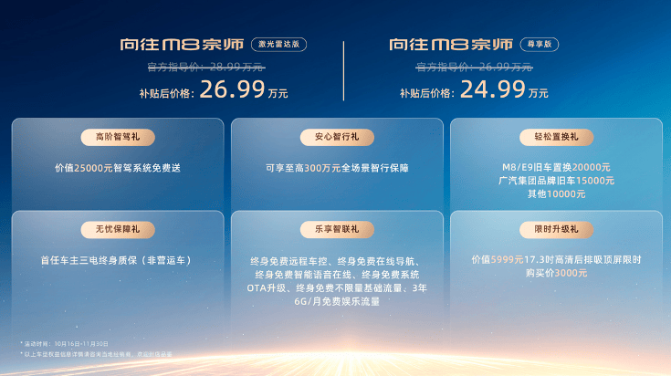 10月16日,宗師系列正式上市,以26.99萬元的起售價拉開序幕,疊加綜合補貼后24.99萬元起的準(zhǔn)入門檻,瞬間點燃中高端MPV市場。