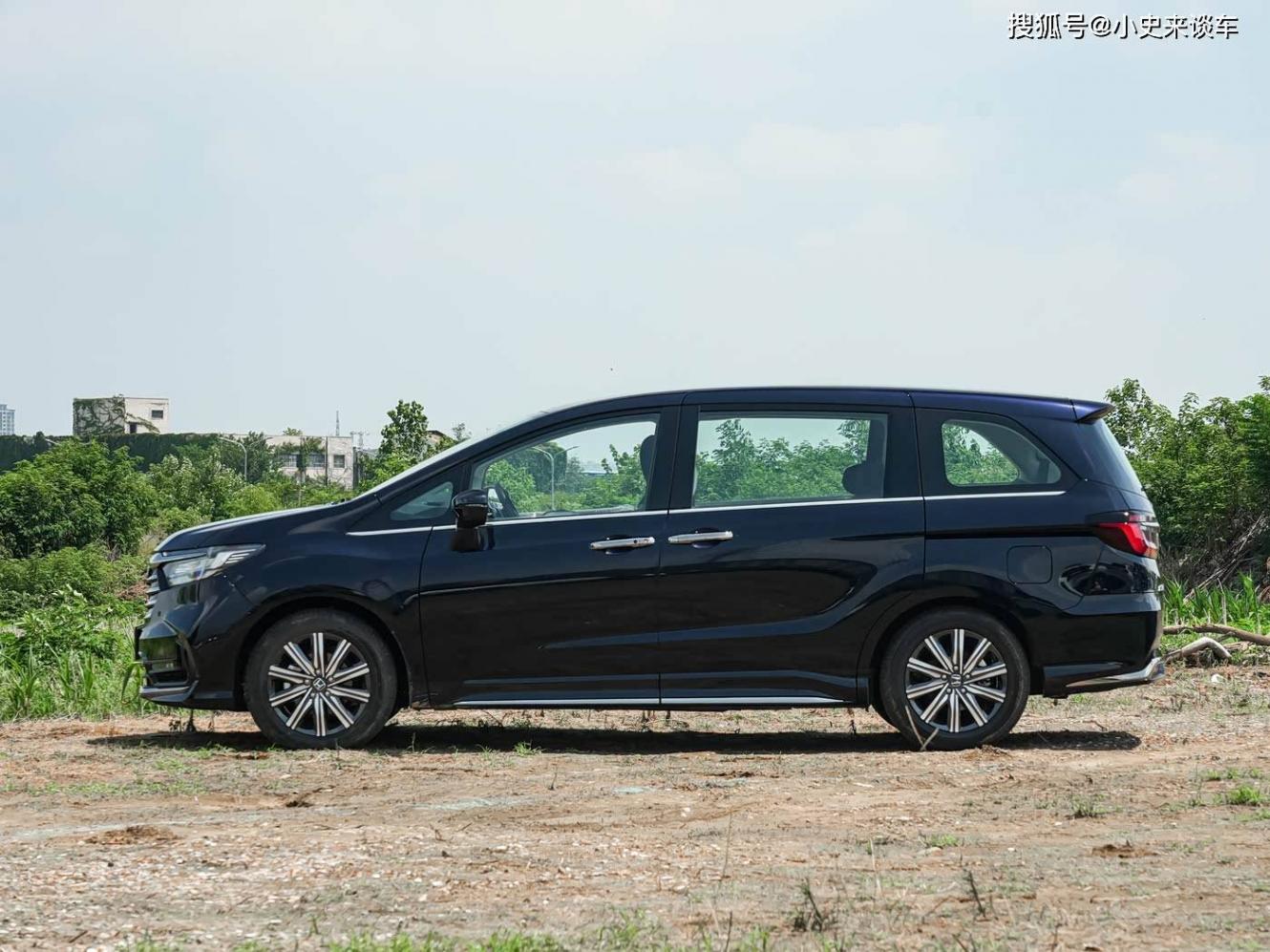 再來看車身側面部分,車身側面延續奧德賽經典的 “黃金比例”,長寬高與軸距雖未公開調整,但通過細節優化更顯修長靈動。新增的 18 英寸精工鋁合金輪轂采用多輻條設計,搭配更新后的 17 英寸高級質感輪轂,為不同配置車型賦予差異化氣場。隱藏式 B 柱與傾斜的 D 柱營造出懸浮式車頂視覺效果,配合貫穿車身的鍍鉻飾條,提升側面層次感。實用配置方面,全系標配的 “魔術感應門” 堪稱點睛之筆,用戶無需接觸車門,揮動手勢即可控制側滑門開閉,抱娃或拎物時尤其便捷。BLACK EDITION 幻夜套件則為追求個性的家庭提供酷黑選擇,包括亮晶黑車身與專屬黑色飾件,低調中彰顯格調。