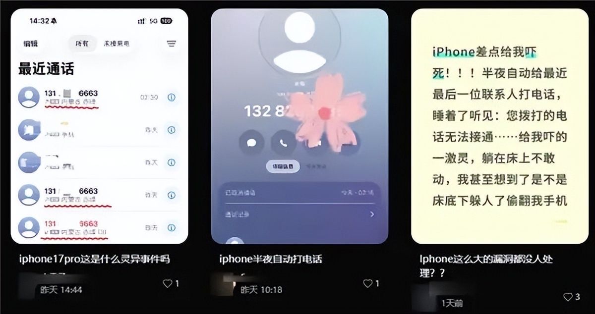有iPhone17 Pro Max用戶稱,使用iPhone很多年,第一次遇到這種情況,凌晨三點多手機自動外呼陌生號碼。