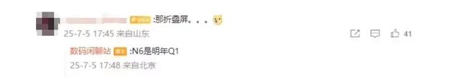 發布時間方面,該博主曾在今年7月爆料,N6 折疊屏手機將于明年 Q1 發布。