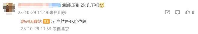 博主則回復道:“?當然是 4K 價位段”。
