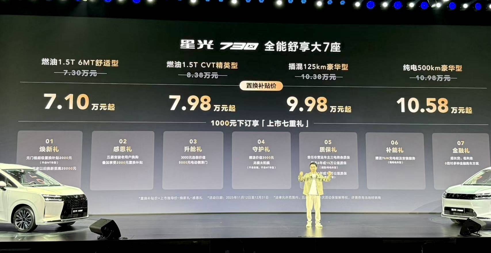 置換7.1萬(wàn)起,星光730正式上市!大7座MPV可選電滑門,燃油+插混+純電三動(dòng)力