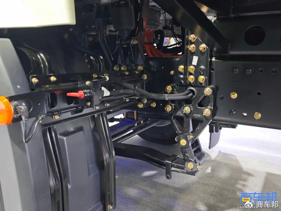 目前,車架高度300mm、電量400kWh的電動重卡,其市場主流車型的整備質量在10.2噸左右。為什么J6L電動重卡能做到9.5噸?一是采用了J6L系列的窄體駕駛室,相對于寬體駕駛室可以降重150kg左右。這款車型應用場景是砂石料運輸、倒短運輸等,用戶不在駕駛室內長時間居住、做飯,窄體駕駛室完全夠用;二是車架厚度從8mm降到7mm,但是在局部位置做了加強處理,在保證相同承載能力情況下降重80kg左右;三是采用了電驅橋(車橋為300工程橋),去掉了傳動軸,動力鏈整體降重140kg左右;四是采用前二后三的變截面板簧,相對于多片簧可降重120kg左右。另外,還有其他多項降重措施。根據以上分析判斷:雖然J6L電動重卡降重0.7噸,但是不會降低車輛的承載能力,有效解決了“虧噸”問題。