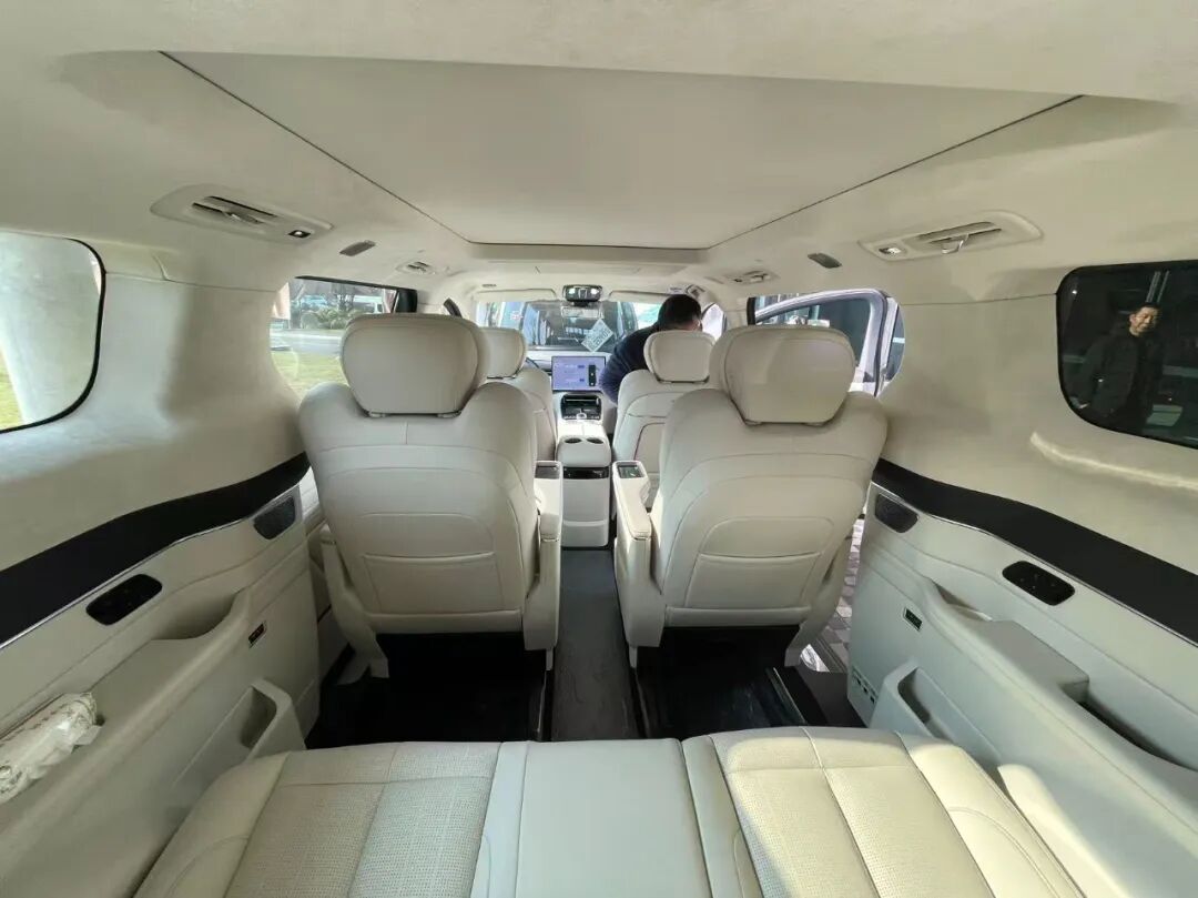 進入車內,銀河V900更是內有乾坤。首先,小尺寸液晶儀表、HUD抬頭數字顯示、懸浮式中控大屏以及第二排17.3英寸吸頂屏、扶手觸控屏等配置,帶來滿滿的科技感。再加上大面積麂皮包覆、電子懷擋、雙50W手機無線快充等,高級感給到位了。