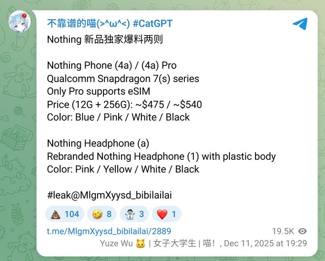 不過(guò) billbil-kun 表示,這款耳機(jī)預(yù)計(jì)將提供粉色、白色、黑色和黃色四種配色,有望全球發(fā)售,上市日期為 3 月 12 日,有可能在 3 月 5 日(開售前一周)發(fā)布、預(yù)售。
