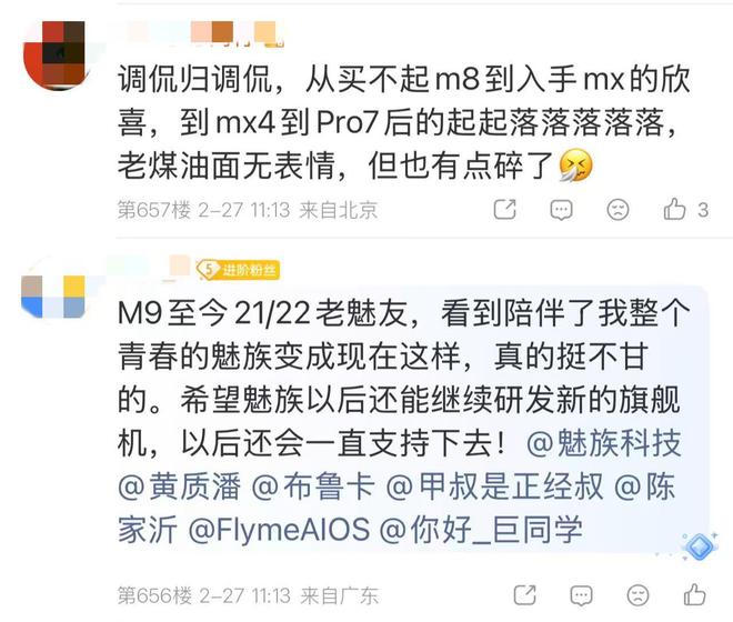 在魅族的評論區中,有不少魅族的粉絲“煤油”在與魅族手機告別,還有網友說“魅族陪伴了他整個青春。”